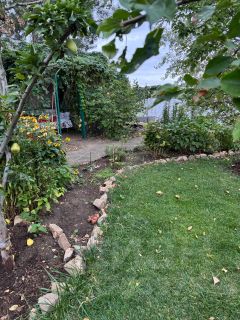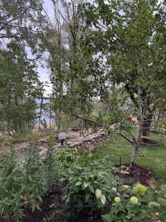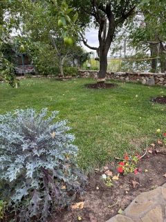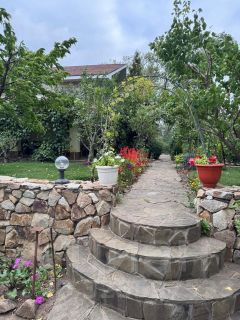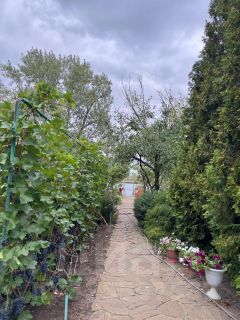 в доме сделаны пластиковые окна, а также есть септик, прописка, проводят газ, на участке есть орехи грецкий и фундук, колоновидная яблоня, виноград, груша, черешня, тутовник, смородина, есть поливная вода и туалет на участке