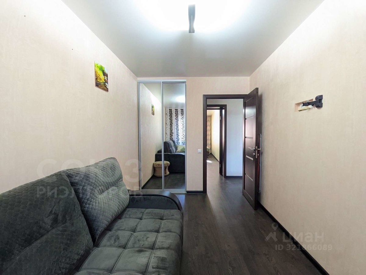 Продаётся просторная 3-комнатная квартира в г. Волжский Общая информация: Адрес: ул. Энгельса, д. 49 Площадь: общая 56.2 кв.м., жилая 22.3 кв.м., кухня-гостиная 19.1 кв.м. Дом: кирпичный, 5 этажей, квартира на 4 этаже. Высота потолков: 2.60 м. Собственность: более 3 лет (минимум налогов при покупке). Планировка: улучшенная, ''распашонка'' — окна выходят на две стороны дома, что обеспечивает отличную инсоляцию и проветривание. Ремонт и состояние: Квартира в отличном состоянии с качественным косметическим ремонтом: Натяжные потолки: разноуровневые, современные. Полы: ламинат, в зоне кухни и санузле — плитка. Электрика: полностью заменена. Санузел: совмещённый, полностью отделан плиткой. Установлена душевая кабина, водонагреватель, раковина, тумба и полотенцесушитель. Балкон: застеклён. Дополнительно: железная входная дверь, стеклопакеты, 2 кондиционера (сплит-системы). Планировочные решения: Кухня-гостиная: 19.1 кв.м. — просторная и светлая зона для отдыха и приёма гостей. Спальни: две изолированные комнаты. В каждой — собственная гардеробная комната, что избавляет от необходимости покупать шкафы. Доп. пространство: есть отдельная кладовая для хранения. Что остаётся в квартире: Кухонный гарнитур Вытяжка и варочная панель 2 сплит-системы Стенка в гостиной Инфраструктура и особенности дома: Во дворе: детская площадка, открытая парковка. Рядом: детский сад, школа. В пешей доступности остановка общественного транспорта и все необходимые магазины. Коммуникации: в доме проведён газ. Финансовые вопросы: Возможна ипотека: в том числе военная ипотека. Возможно использование: материнского капитала. Перепланировка: узаконена. Все работы согласованы. Собственник: 1 взрослый. Идеальный вариант для семьи с детьми! Квартира полностью готова к проживанию.