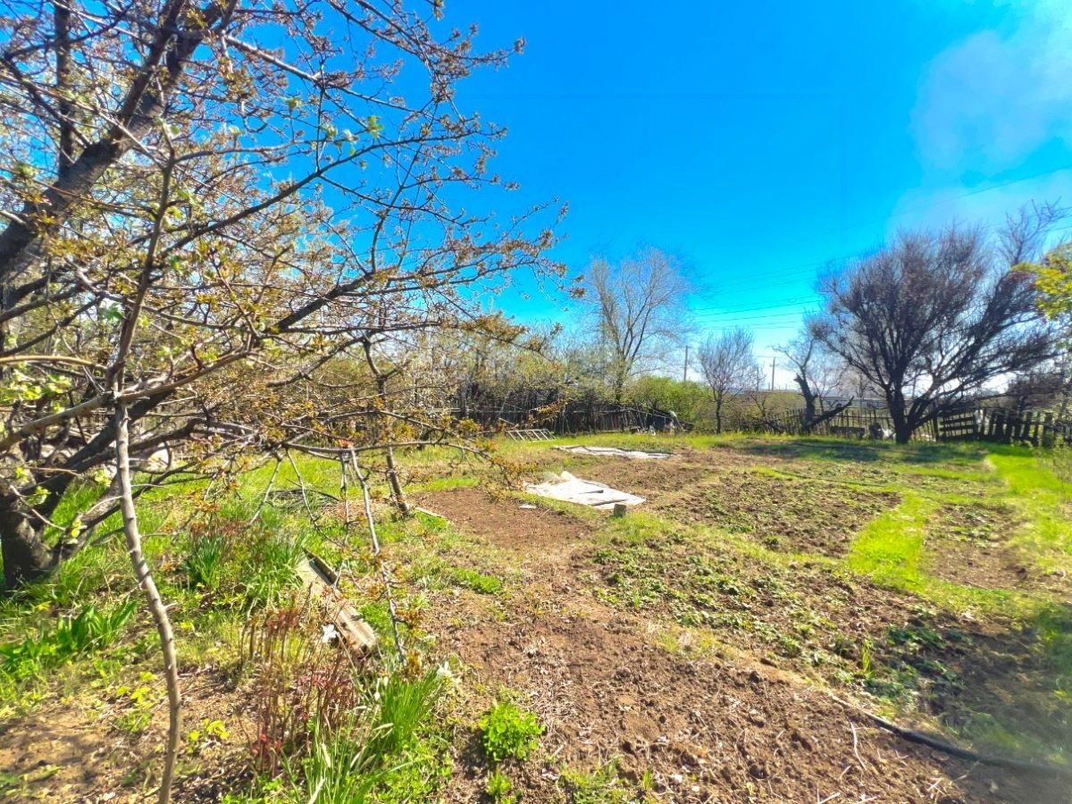 На участке расположен маленький дачный домик. Посажены плодовые деревья: яблони, айва, вишня, персик, кусты малины, крыжовник, клубника.
