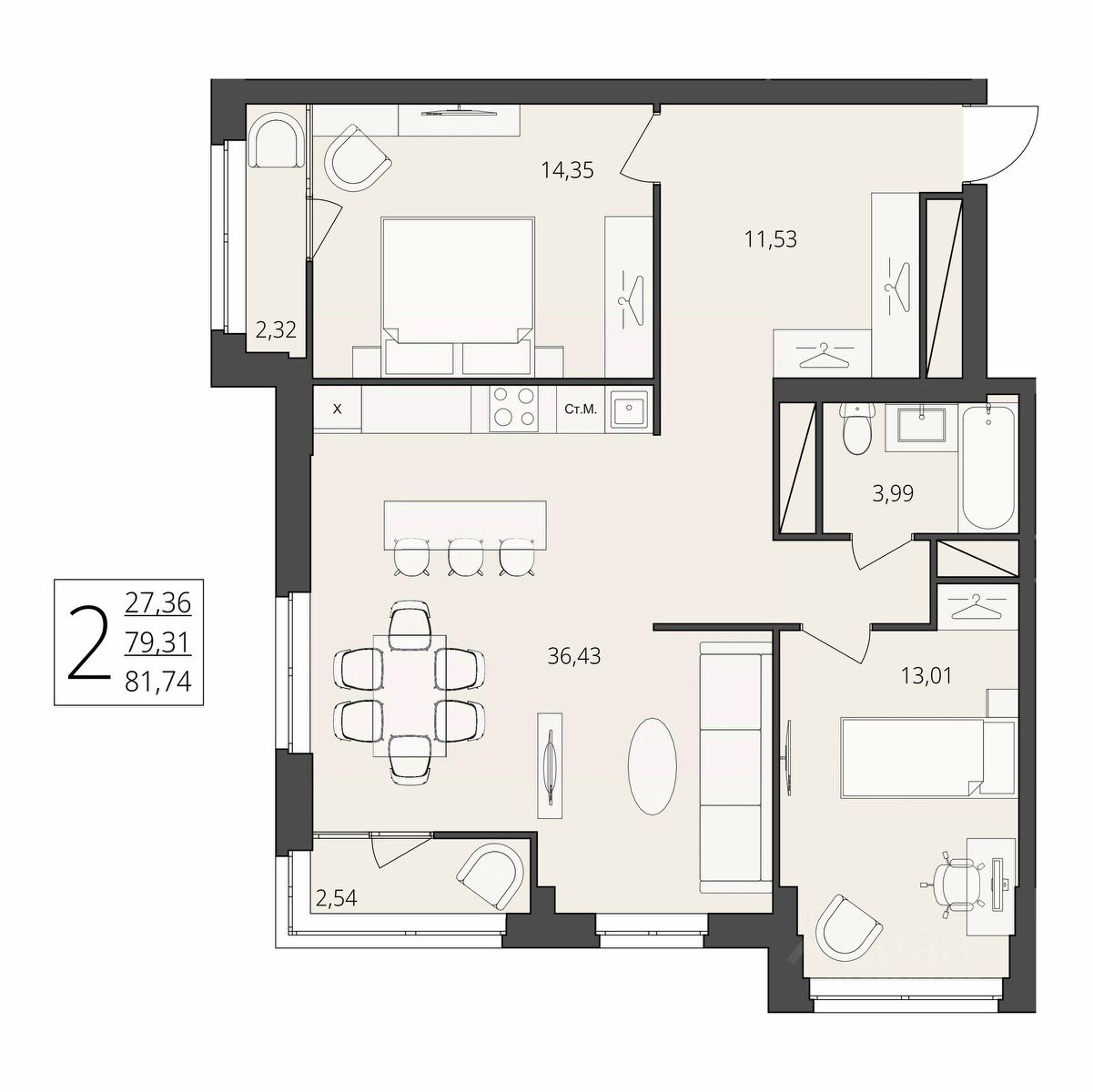 Общая площадь81,74 м2