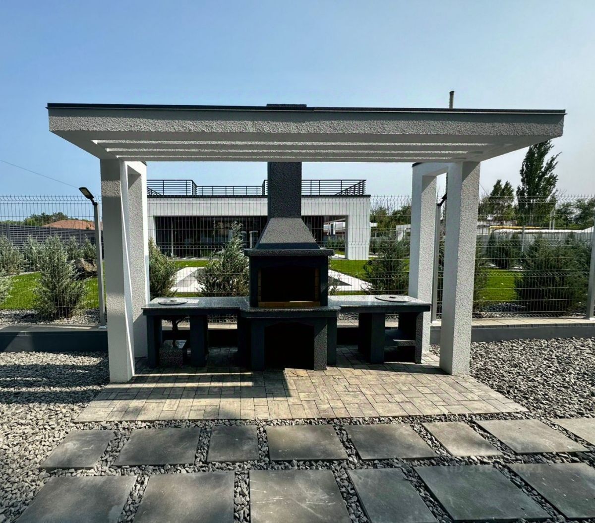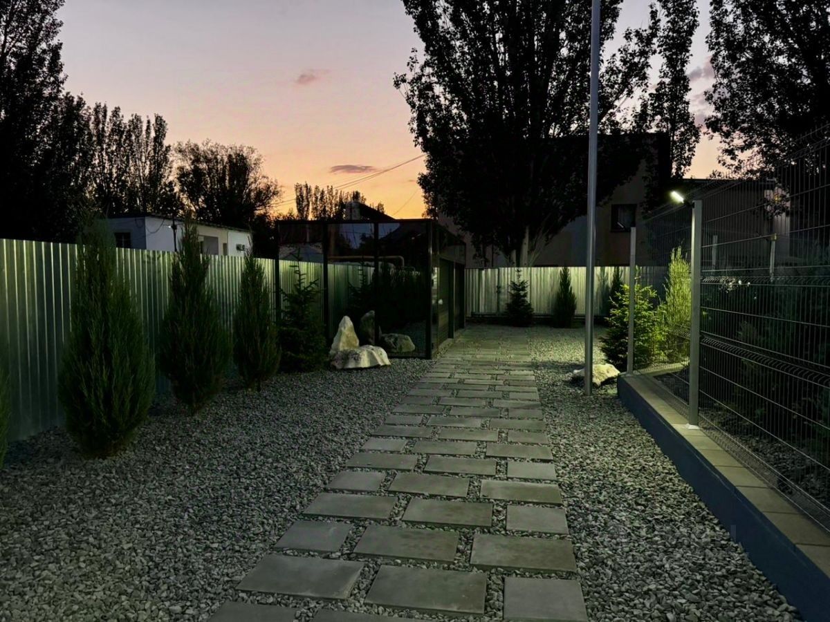 Испанский стиль и простор: 177 м² — гостиная, 3 спальни, кухня, гардеробная. Высочайшие потолки, панорамные окна, авторская планировка. Территория премиум: Участок с дорогой плиткой, хвойными деревьями, газоном, автополивом и подсветкой. Видеонаблюдение (10 камер) — полная безопасность. Зоны отдыха: Навес под катер, стеклянный хозблок, гараж с автоматическими воротами, Навес из стильной современной перголы, оформленная зона барбекю и зона отдыха у домашнего очага создадут уютную атмосферу для проведения время в кругу семьи и друзей. Приятной изюминкой данного дома является крыша с открытой террасой, где можно расслабиться и насладиться прекрасным видом на окрестности. Коммуникации: Всё подключено — газ, вода, канализация, электричество 15 кВт. Все центральное, городское. Закрытый комплекс: Всего 8 участков в едином стиле — элитный формат жизни. Фасад въездной группы и зеленые насаждения и вся территория будет в едином стиле.