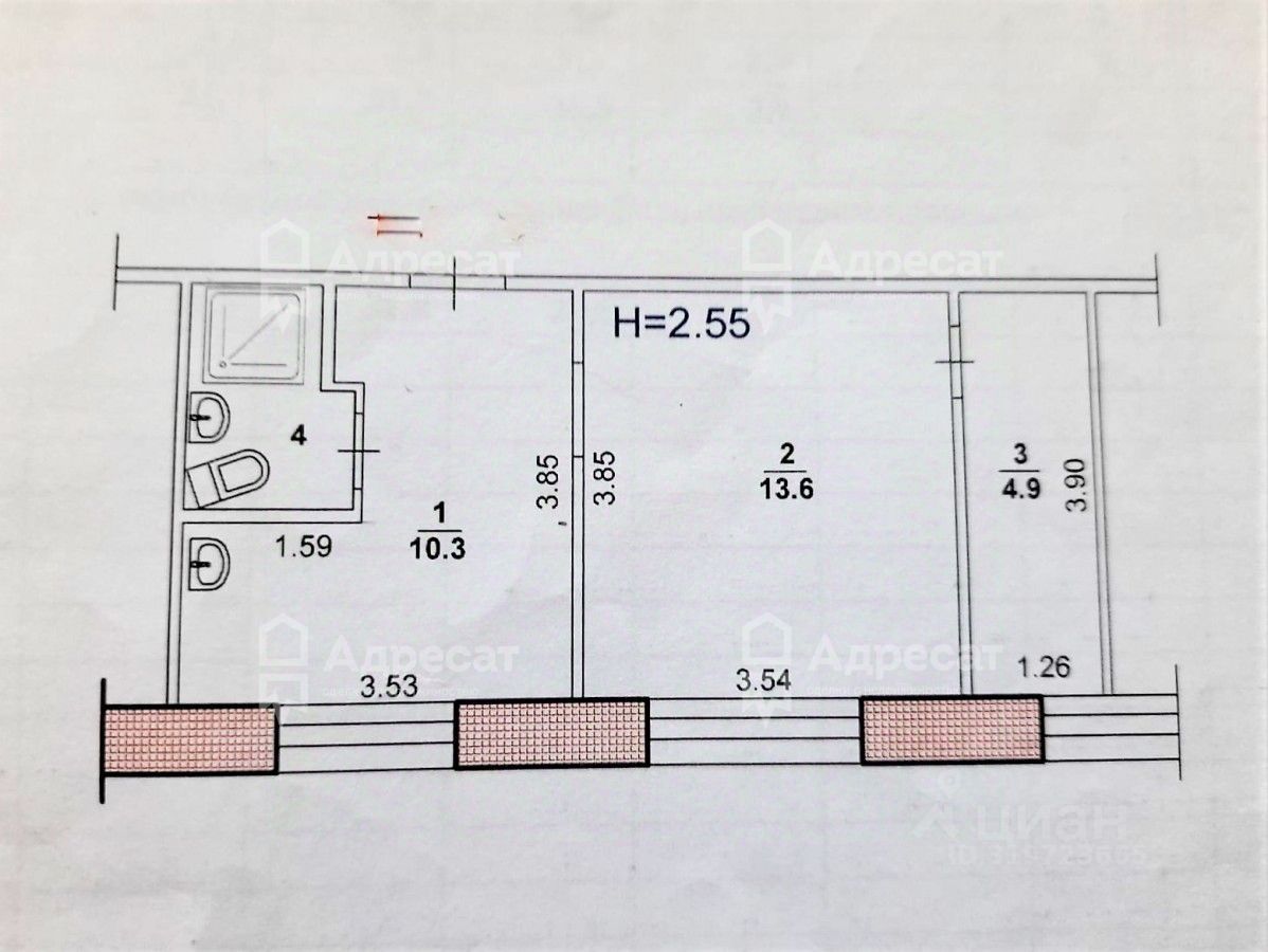 Двухкомнатная квартира расположена в г. Волжский.