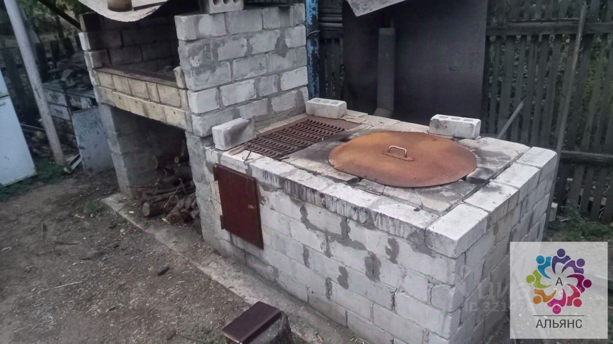 О ДОМЕ Планировка Комната 45 кв.м. Кухня 12.5 кв.м. Санузел раздельный Гараж (дополнительный вход в дом) Погреб На территории участка много плодовых деревьев, хоз. построек и мангальный комплекс с тандыром и зоной для барбекю В дом проведен газ, питьевая вода и электричество