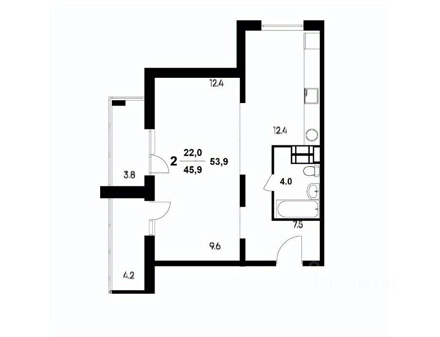О КВАРТИРЕ: Общая площадь 45,9 кв.м. Площадь комнат 9,6 и 12,4 кв.м. Две застекленные просторные, широкие лоджии по 4 кв.м, с выходом из комнат! Установлены алюминиевые радиаторы. Горизонтальная разводка отопления - это бонусом ''тёплый пол'' в холодное время года! Закрываемый тамбур с системой хранения.