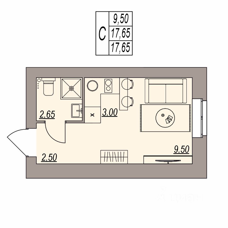 Общая площадь17,65 м2