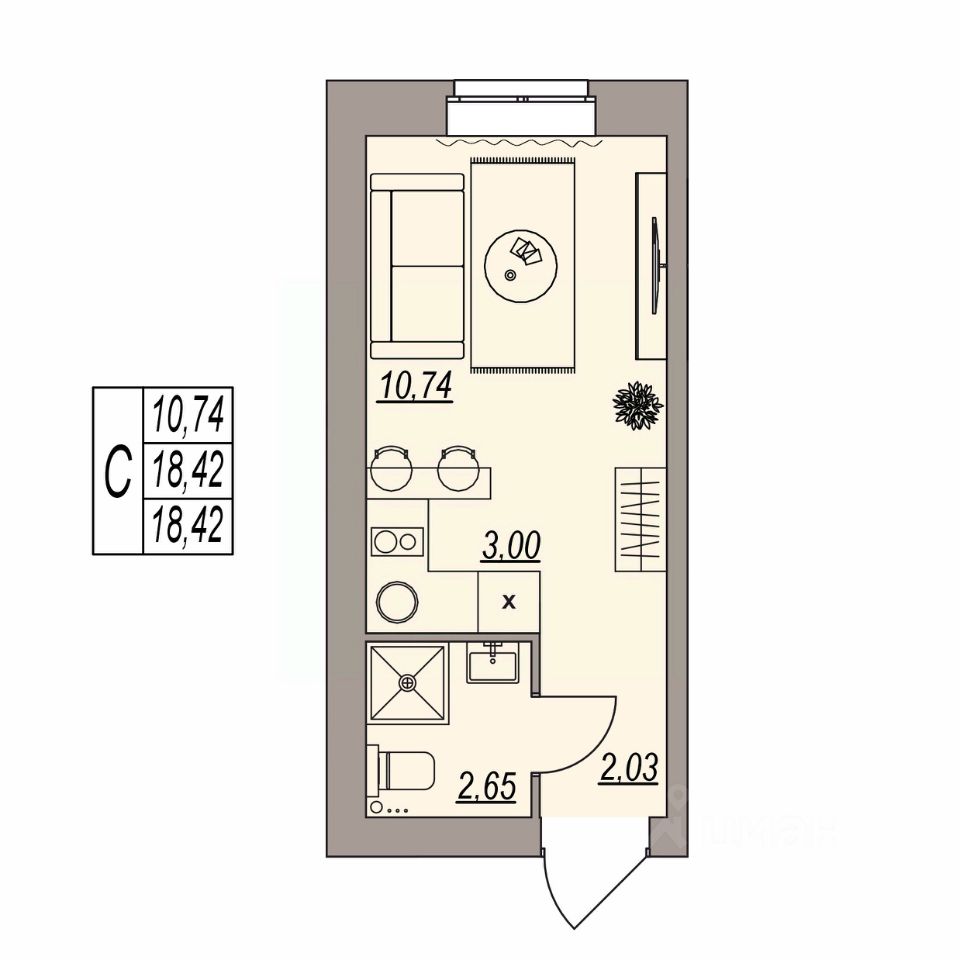Общая площадь18,42 м2