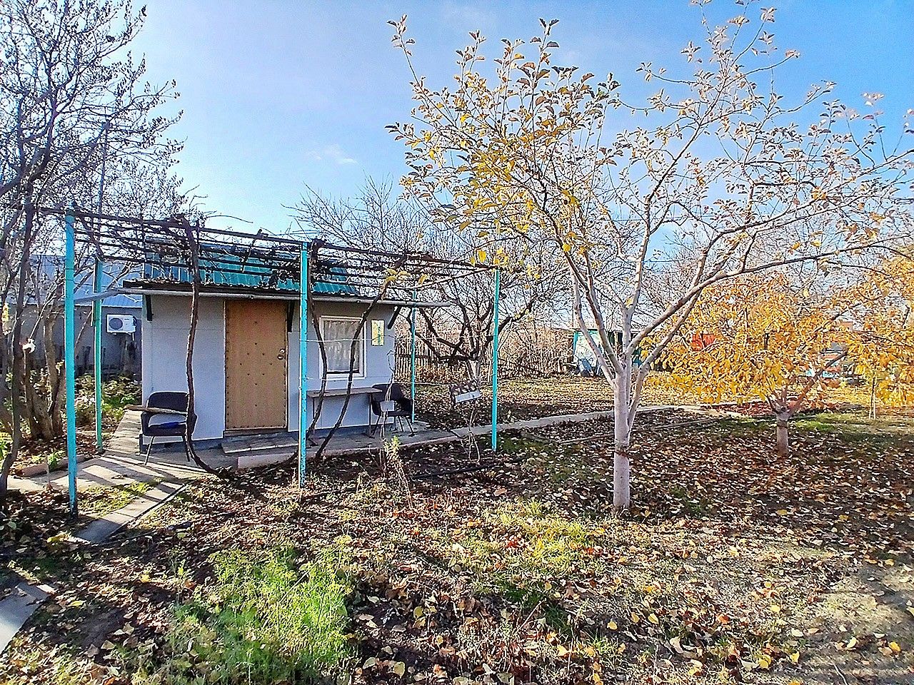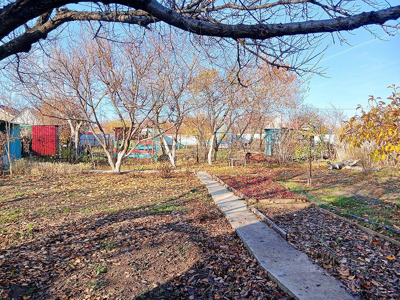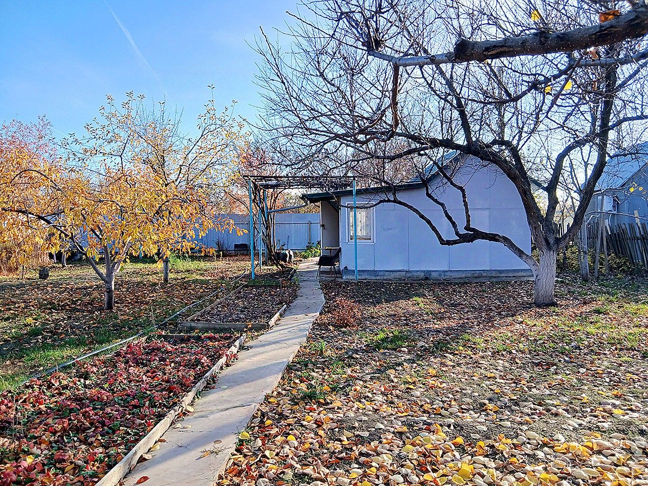 На участке имеются многолетние насаждения: яблони, груша, абрикос, слива, вишня, орех, малина, смородина, крыжовник, клубника, виноград.