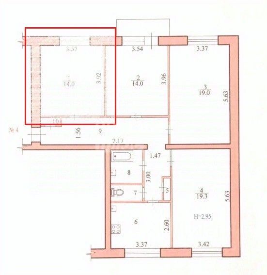Общая квартиры - 96,3 м.кв., кухня - 8,8 м.кв. раздельный санузел жилая комната - 14,0 м.кв., Высота потолков - 2.9 м.
