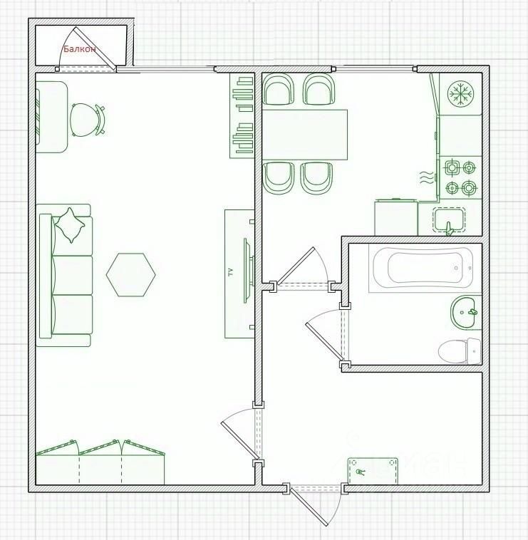 Общая площадь: 29,1 кВ.м.