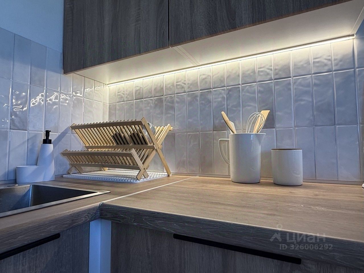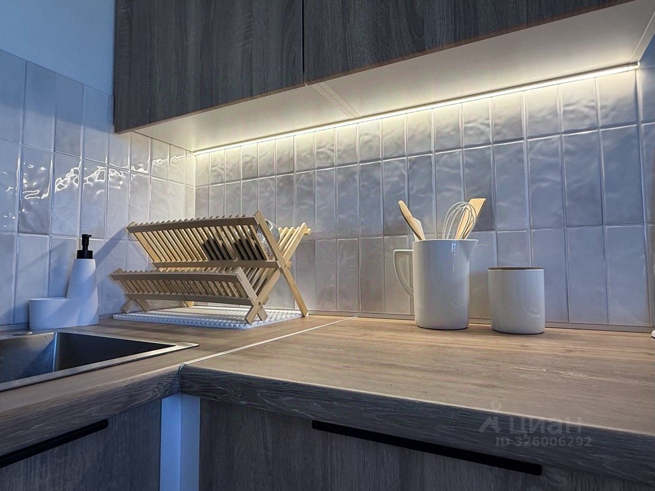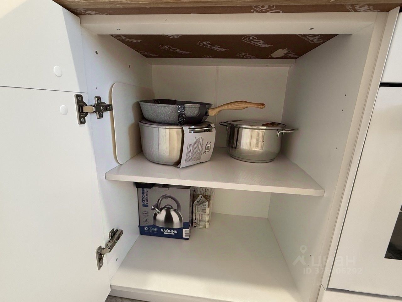 Техника: телевизор 55'', стиральная машина (7 кг), холодильник No Frost, встроенная варочная панель и духовой шкаф, вытяжка, микроволновка, сплит-система, пылесос, утюг.
