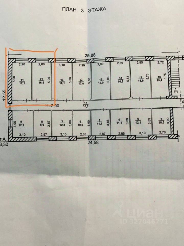 Расположен а административном здании напротив Пенсионного Фонда между улицами Ленина и Набережная, перед зданием есть парковка и сквер. Планировка в здании коридорного типа с комнатами по обе стороны, два санузла на этаже, а так же есть свой отдельный санузел в комнате. Помещение состоит из двух смежных комнат а так же есть отдельный вход в каждую. С отделкой. Все коммуникации имеются, сигнализация и консьерж на входе.