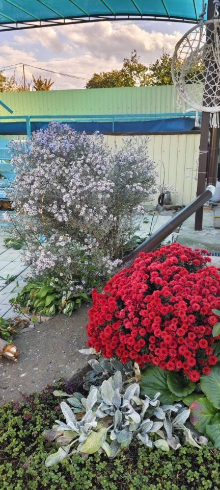 Мангальная зона Хоз постройки из кирпича: Хоз. блок для инвентаря, хоз.блок для садовой техники, уличный туалет Множество плодовых и декоративных растений, цветы.